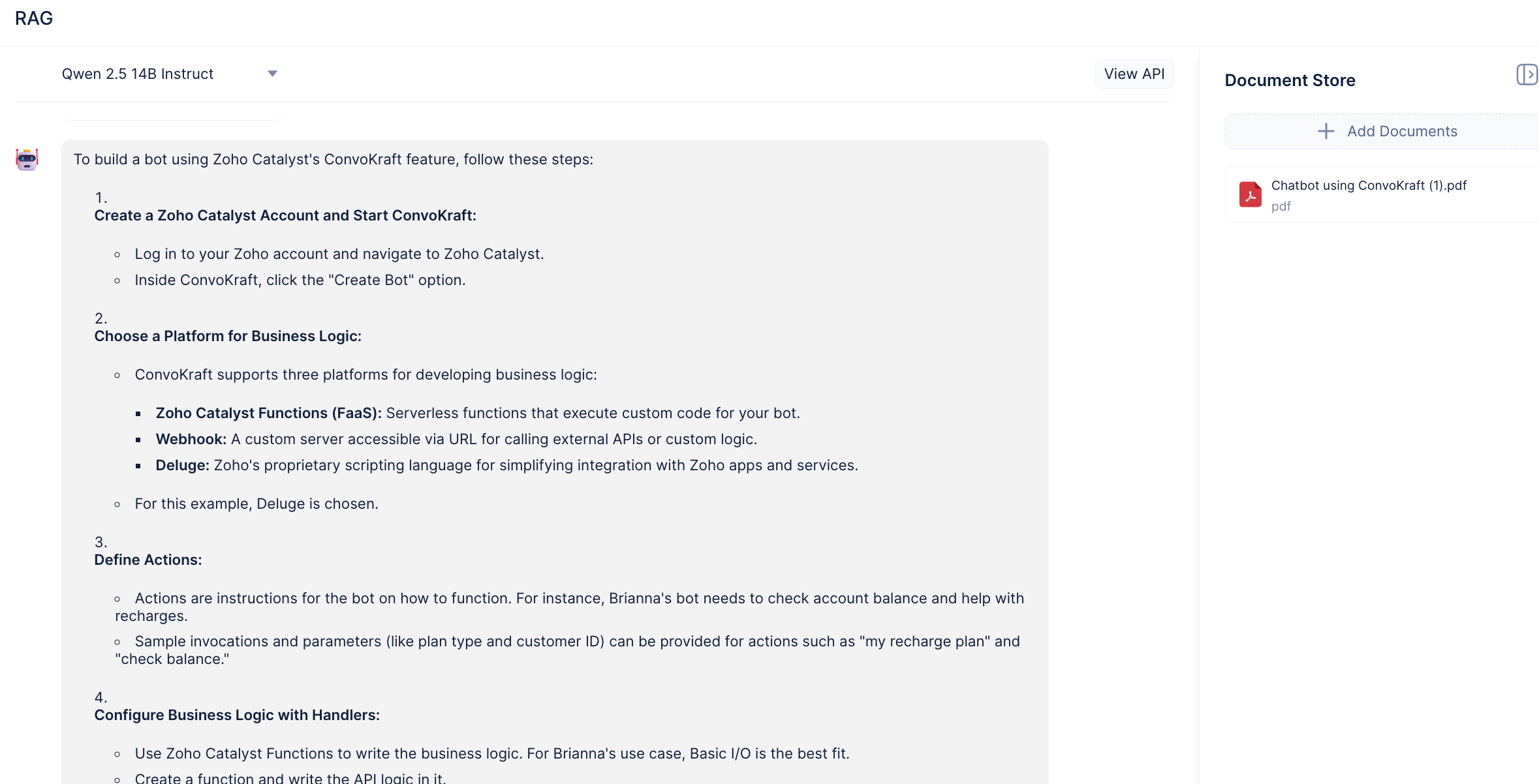 Ready to try RAG? Reach out to us at support@zohocatalyst.com